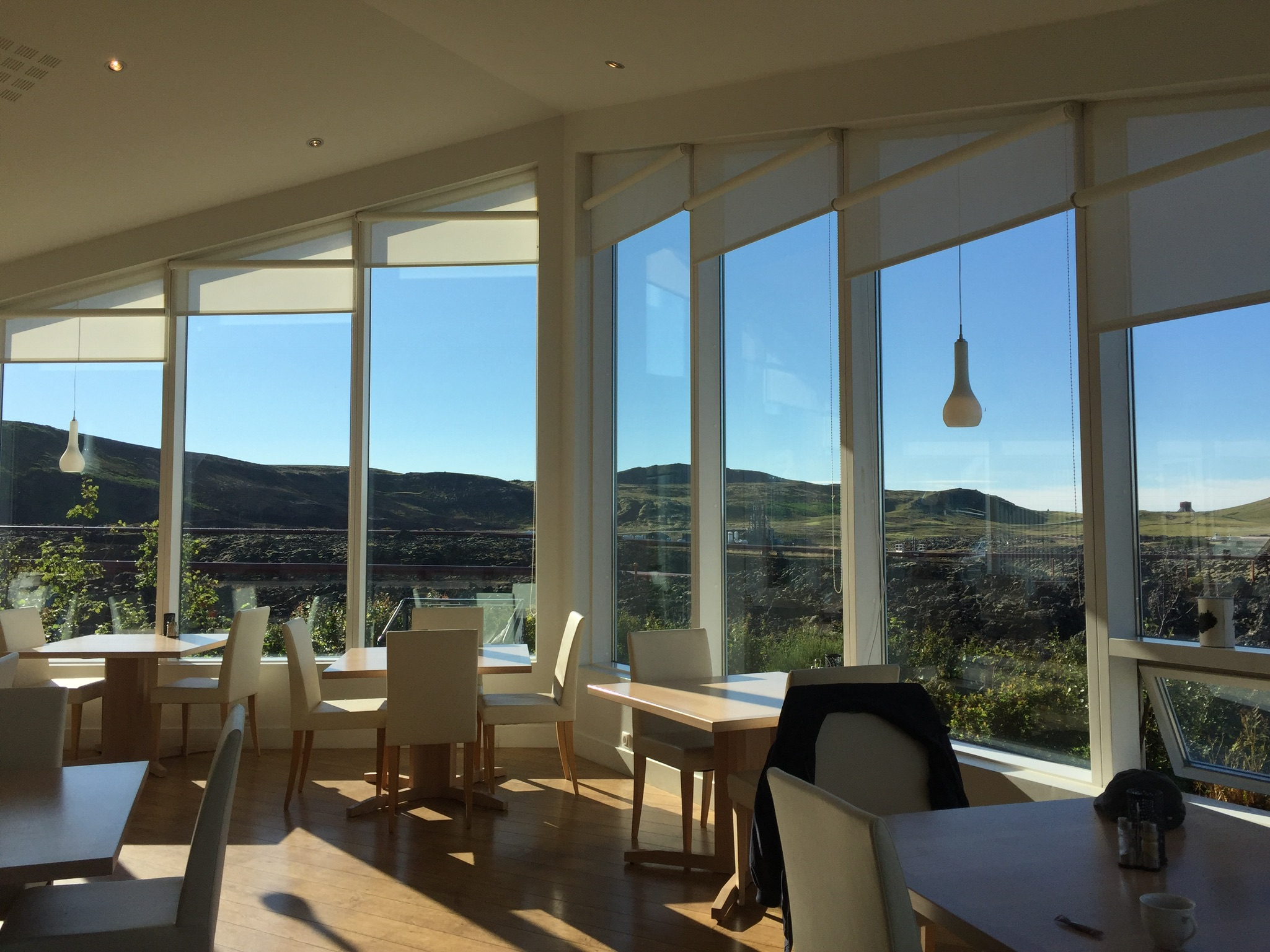 We sat in the lounge area at Narsarsauq to wait our turn for clearance, watching helicopters and planes plow into the high winds, and then took off smoothly - heading to Iceland. Once again, once we got over the cloud layer with just a bit of rain the skies were beautifully clear and our trip over the water to Keflavik was lovely. The taxi driver who took us to the hotel welcomed us by telling stories of the difference between night trolls and day trolls and the current state of volcanoes in the country. We stayed in the Northern Lights Inn close to the airport and right beside the famous Blue Lagoon. Julian and I had had an earlier opportunity to visit Iceland and enjoy the waters there but there was no time tonight (with the time change we arrived after nine pm). Travis had sung the praises of the in house restaurant, Max's, and I must say the Wolf Fish au gratin was ridiculously delicious! It wasn't hard to go right to sleep after our long "in the air" day and a great dinner, lulled by the sound of steam from the lagoon and the cool night air.